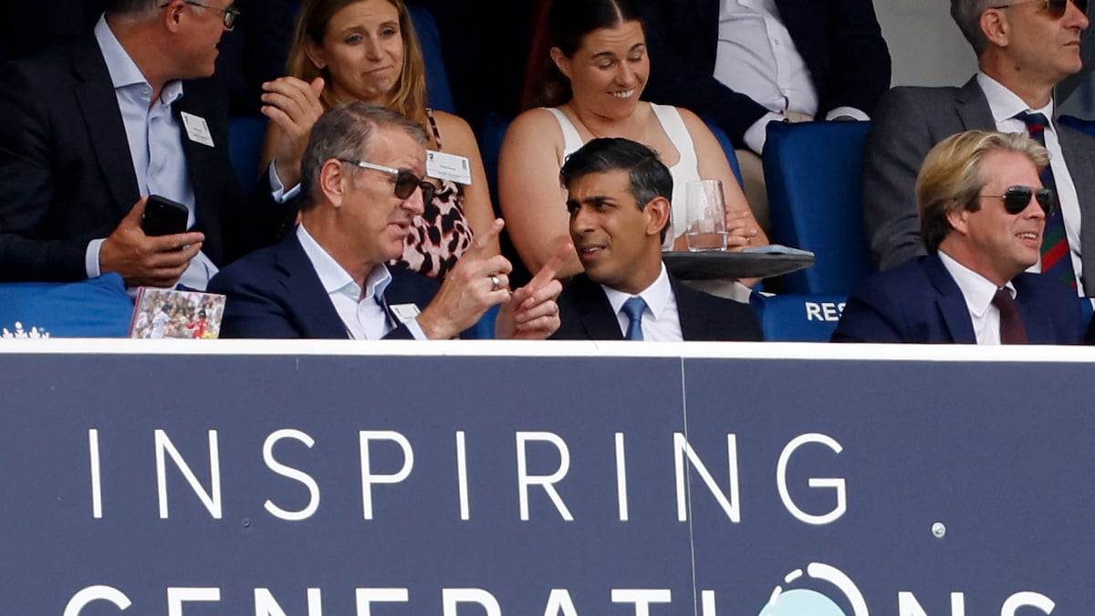 Rishi Sunak attends the second Ashes Test at Lord’s© AFP British Prime Minister Rishi Sunak on Monday aimed a verbal bouncer at Australia’s cricketers after the Lord’s Ashes match —…