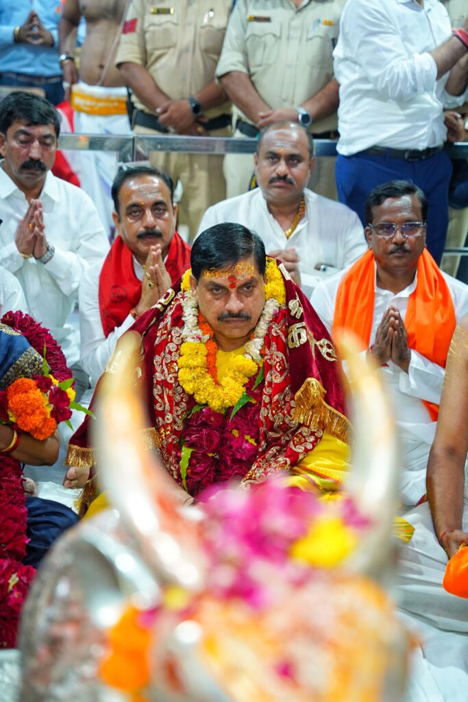 दर्शन कर मुख्यमंत्री डॉ यादव ने कहा की बाबा श्री महाकाल की कृपा से प्रधानमंत्री श्री नरेंद्र मोदी के मार्गदर्शन में मध्य प्रदेश देश के साथ कदम से कदम मिलाकर प्रगति कर समृद्धि की और अग्रसर है। 11 जुलाई को इंदौर में आयोजित इन्वेस्टर समिट में प्राप्त निवेश से प्रदेश के युवाओं को रोजगार प्राप्त होगा। युवाओं को स्कूल एवं कॉलेज में विश्वस्तरीय रोजगारमूलक पाठ्यक्रम की शिक्षा दी जा रही है । युवाओं को रोजगार प्रदान करने के लिए 3 लाख से अधिक रोजगार सृजित किए जा रहे है। प्रमोशन के माध्यम से प्रदेश के 5 लाख से अधिक अधिकारियों और कर्मचारियों को फायदा होगा।