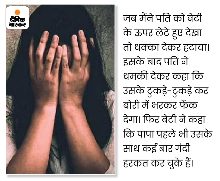 14 साल की बेटी के साथ पिता अश्लील हरकत करने लगा। डर और धमकाने के कारण बेटी ने किसी को कुछ नहीं बताया और चुपचाप पिता की हैवानियत सहती गई। लेकिन एक दिन मां जब घर पर थी तब पिता ने हरकत की तो मां ने सब देख लिया। बेटी के साथ हो रहे इस अत्याचार का विरोध किया तो पिता ने मां की जमकर पिटाई की।