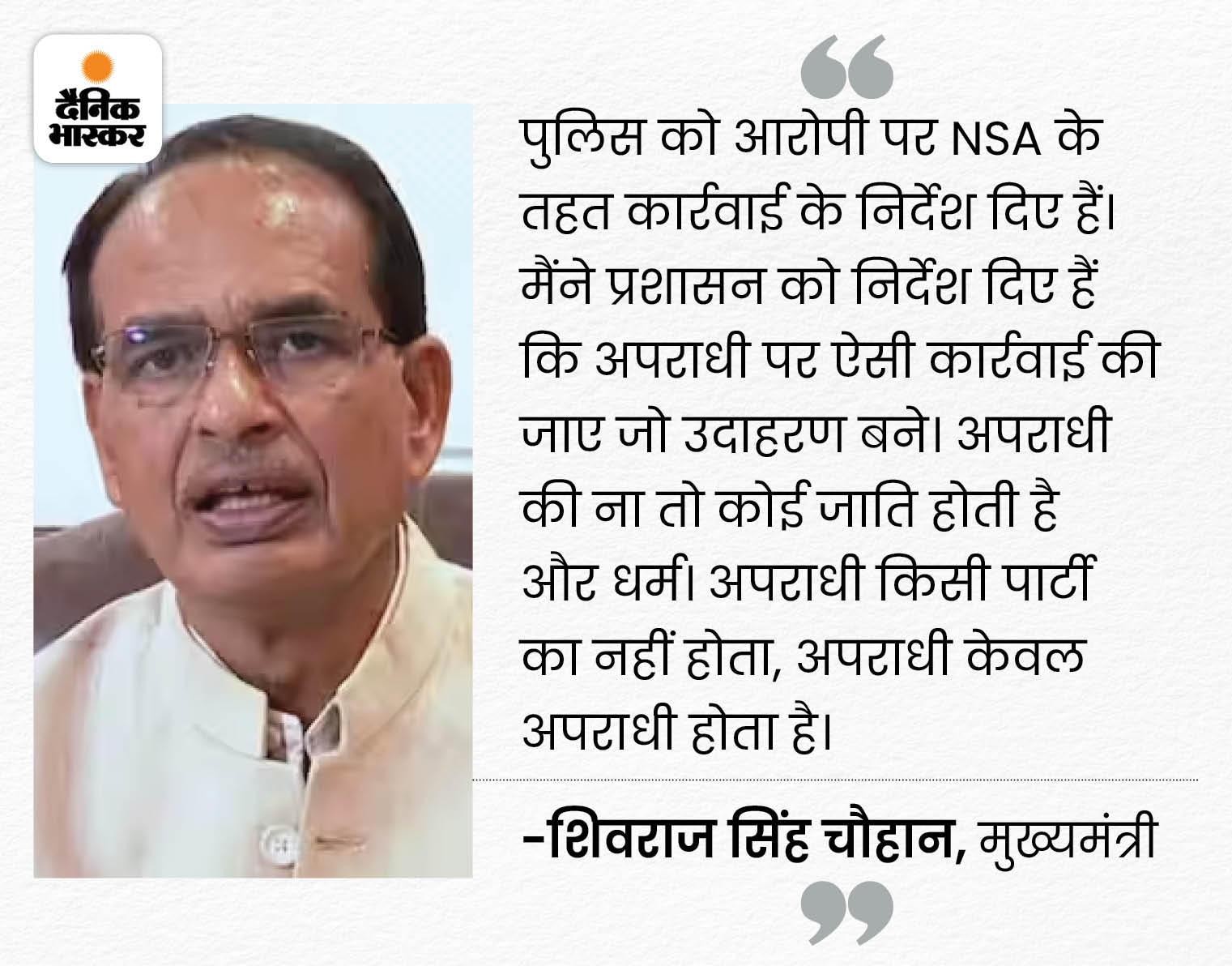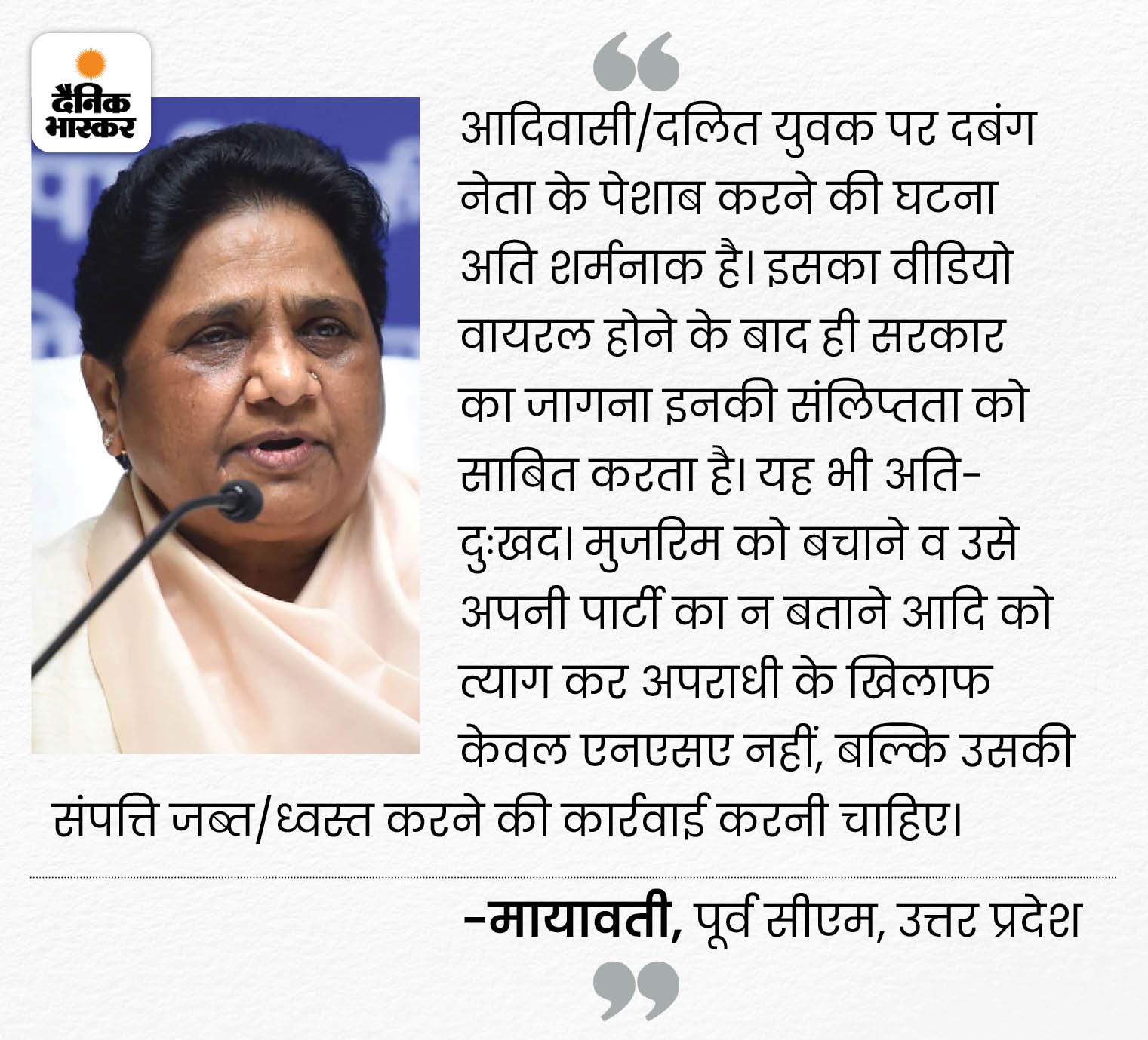 पेशाब कांड पर सीएम शिवराज सिंह ने कहा है, ‘एनएसए लगा दिया गया है, बुलडोजर भी चला दिया गया है। अगर जरूरत पड़ी तो मामाजी अपराधियों को 10 फुट जमीन के नीचे भी गाड़ देंगे। मामाजी का संदेश साफ है, इसलिए गलत मंशा वालों मध्यप्रदेश में अपराध करने से पहले 10 बार सोच लेना।’