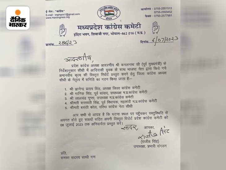 बीजेपी के बाद मध्यप्रदेश कांग्रेस कमेटी ने भी सीधी पेशाब कांड की जांच के लिए पांच लोगों की समिति बनाई है। पीसीसी चीफ कमलनाथ के निर्देश पर गठित समिति के सदस्य ज्ञानेंद्र प्रताप सिंह, मानिक सिंह, लाल चंद्र गुप्ता, सरस्वती सिंह और बसंती कोल हैं। यह समिति मौके पर पहुंचकर मामले की विस्तृत जांच करेगी और 8 जुलाई तक अपनी रिपोर्ट मध्यप्रदेश कांग्रेस कमेटी को सौंपेगी। वहीं, युवक कांग्रेस ने मामले को लेकर मुख्यमंत्री शिवराज सिंह चौहान के खिलाफ प्रदेश भर में विरोध प्रदर्शन किया।