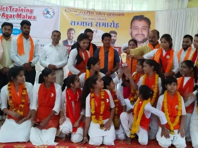आगर मालवा में कम्युनिटी हाल छावनी में सोमवार को जिला स्तरीय मार्शल आर्ट प्रशिक्षण दिया। इसमें जिले के बालक एवं बालिकाओं ने कराते, जूडो, लाठी एवं जूजूत्सु का प्रशिक्षण लिया। बाद में उत्कृष्ट खिलाड़ियों का सम्मान किया गया।