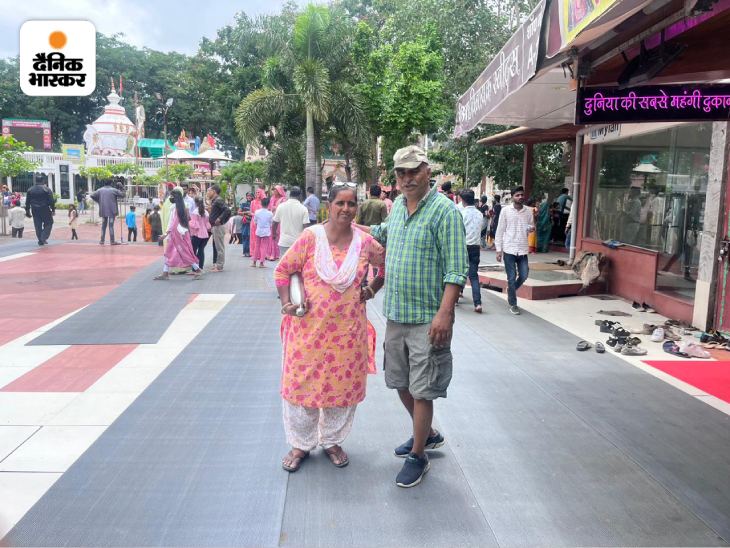 मंदिर में दर्शन करने के बाद अनिल मेहता और पत्नी गीता मेहता ने क्लिक कराई यादगार तस्वीर।