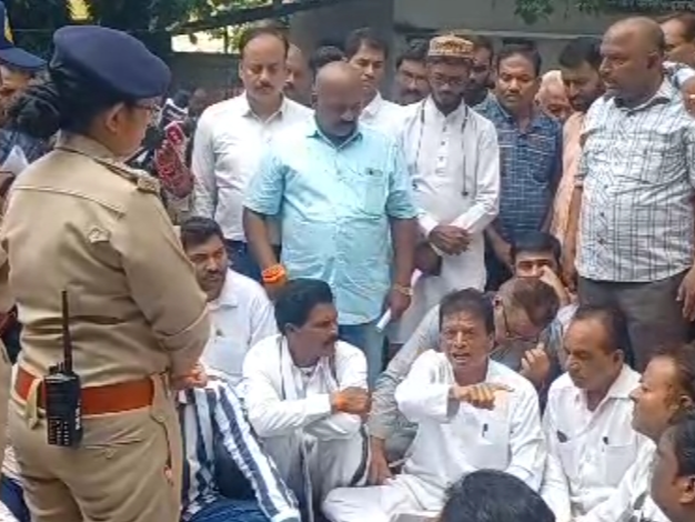 आज कांग्रेस जिला अध्यक्ष विश्वनाथ ओकटे ,शहर कांग्रेस अध्यक्ष नंदू सूर्यवंशी,निगम अध्यक्ष सोनू मागो,महिला कांग्रेस अध्यक्ष किरण चौधरी सहित दर्जनों कार्यकर्ताओ ने कोतवाली थाने का घेराव किया ।