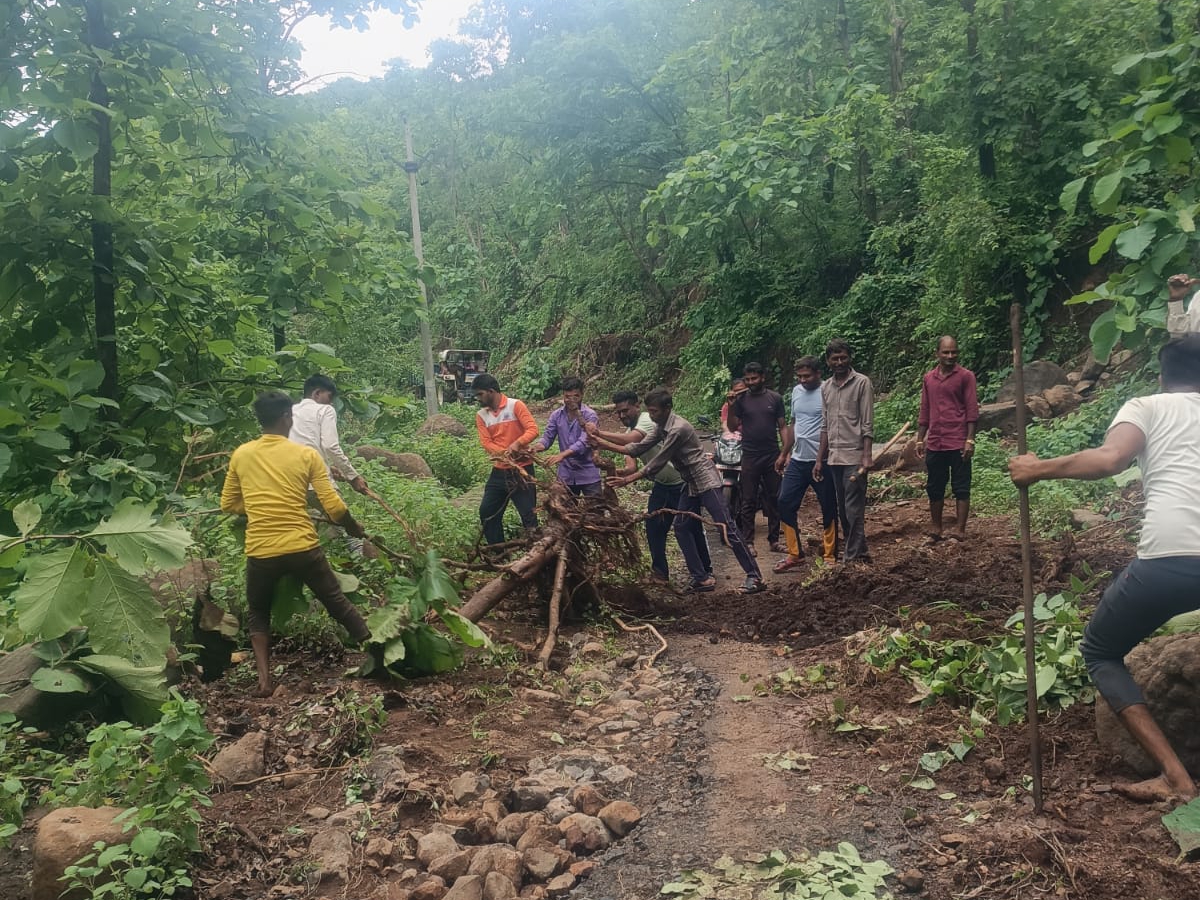 सतपुड़ा की ऊंची पहाड़ी पर बसे जंबुपानी गांव में पिछले दिनों तेज बारिश हुई थी। इसके कारण रास्ते बंद हो गए। गांव को जोड़ने वाली अमरावती नदी में पानी है, लेकिन ग्रामीण यहां से जान जोखिम में डालकर निकल रहे हैं। ग्रामीणों का कहना है कि सड़क उखड़ गई है।