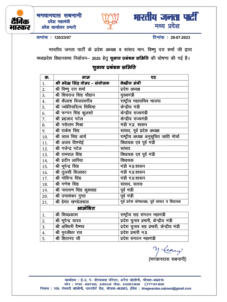 बीजेपी की चुनाव प्रबंधन समिति की सूची
