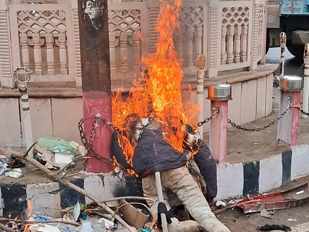 विहिप और बजरंग दल कार्यकर्ताओं ने अस्पताल चौराहे पर प्रदर्शन कर चक्का जाम किया। इस दौरान चौराहे के चारों ओर बड़ी संख्या में लोगों की भीड़ जमा हो गई। वाहनों की आवाजाही थम जाने से काफी लंबा जाम लग गया। जिससे लोगों को परेशानी का सामना करना पड़ा। पुतला दहन के बाद जाम हटाया जा सका।