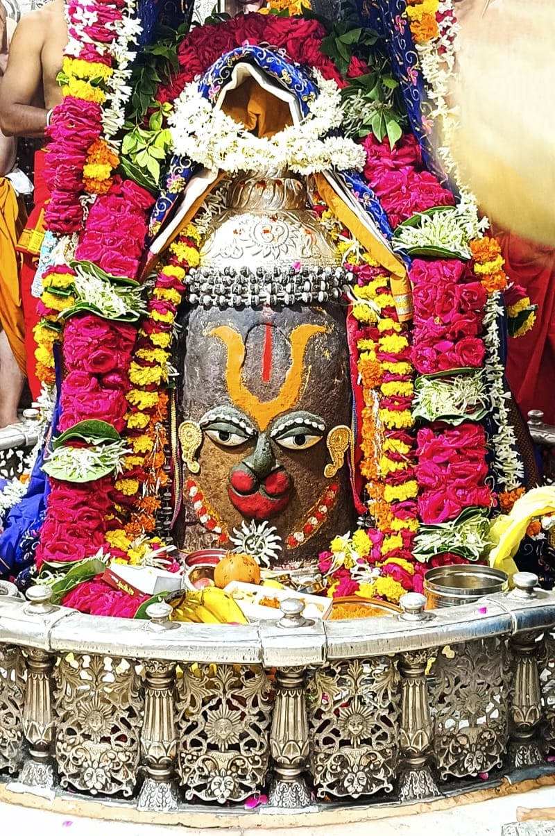 बारह ज्योतिर्लिंगों में से एक विश्व प्रसिद्ध श्री महाकालेश्वर मंदिर में श्रावण माह के शनिवार तड़के 3 बजे मंदिर के कपाट खोलने के पश्चात भगवान महाकाल को जल से स्नान कराया गया। इसके बाद पण्डे पुजारियों ने दूध,दही,घी,शहद शक्कर फलों के रस से बने पंचामृत से बाबा महाकाल का अभिषेक पूजन किया। भगवान महाकाल के मस्तक पर चन्दन का तिलक और भांग से हनुमान जी स्वरूप में श्रृंगार किया गया।