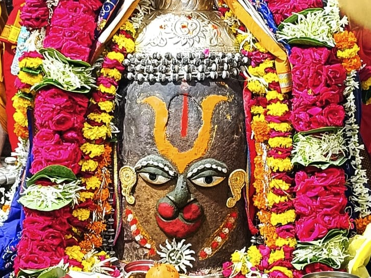 - Tilak Of Sandalwood On The Head Of Lord Mahakal And Makeup In The Form Of Hanuman Ji With Hemp