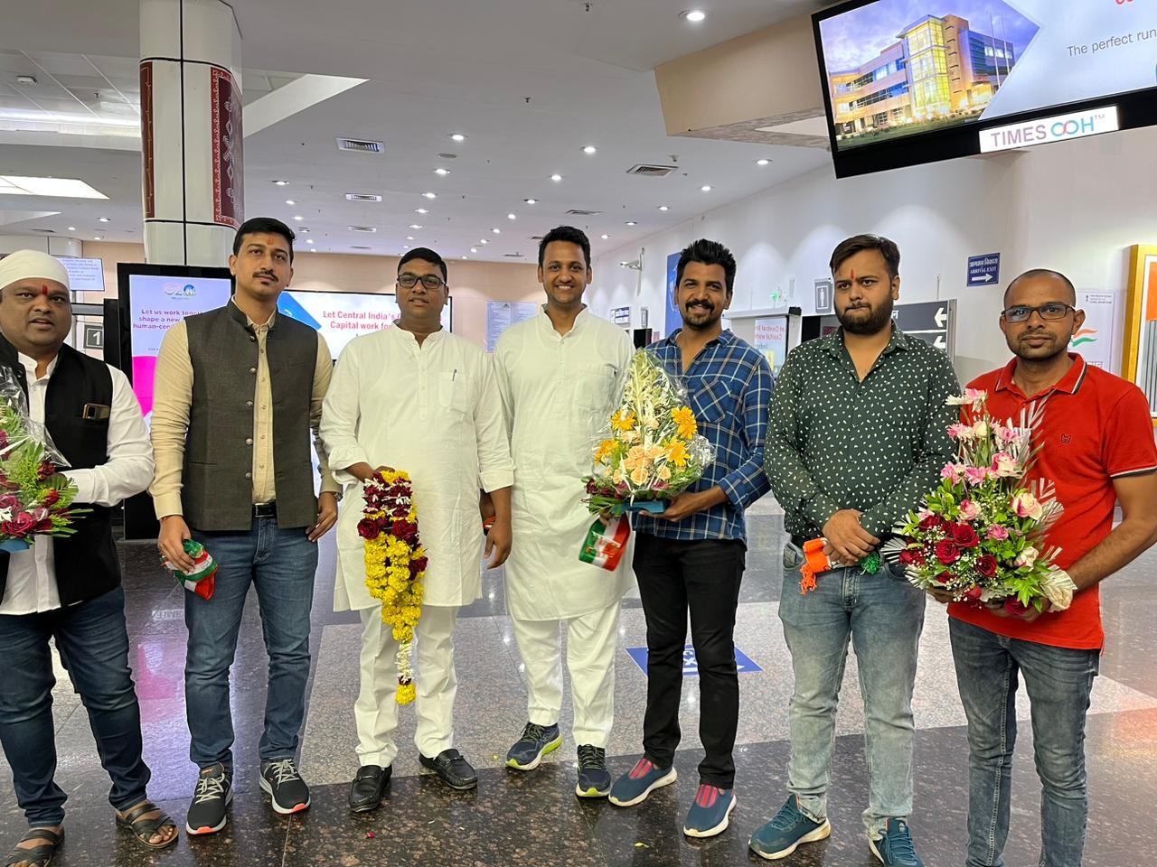 युवा कांग्रेस प्रदेश अध्यक्ष विक्रांत भूरिया द्वारा निकाली जा रही आदिवासी स्वाभिमान यात्रा के झाबुआ में आयोजित समापन समारोह में शामिल होने के लिए सोमवार सुबह युवा कांग्रेस के राष्ट्रीय अध्यक्ष श्रीनिवास बी.वी. इंदौर पहुंचे। इंदौर एयरपोर्ट पर इंदौर जिला युवा कांग्रेस द्वारा पुष्पमाला से स्वागत किया गया, जिसमें मुख्य रूप से जिला युवा कांग्रेस अध्यक्ष दौलत पटेल, शहर अध्यक्ष रमीज खान, शादाब खान, स्वप्निल कांबले, निशान सिंह चौहान, गौरव पटेल, अनमोल ढोली, अनुकूल अवस्थी, सोनू मालवीय और सैकड़ों कार्यकर्ता मौजूद थे।