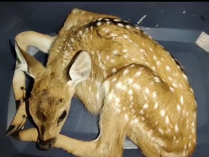 जिसके बाद आज बुधवार उन्हें स्थानीय लोगों ने जानकारी दी कि उन्होंने एक हिरण के बच्चे को बचाया है । जो की शांति नगर के पास एक नाली में फंसा हुआ था और उसके आसपास कुत्ते मौजूद रहे।